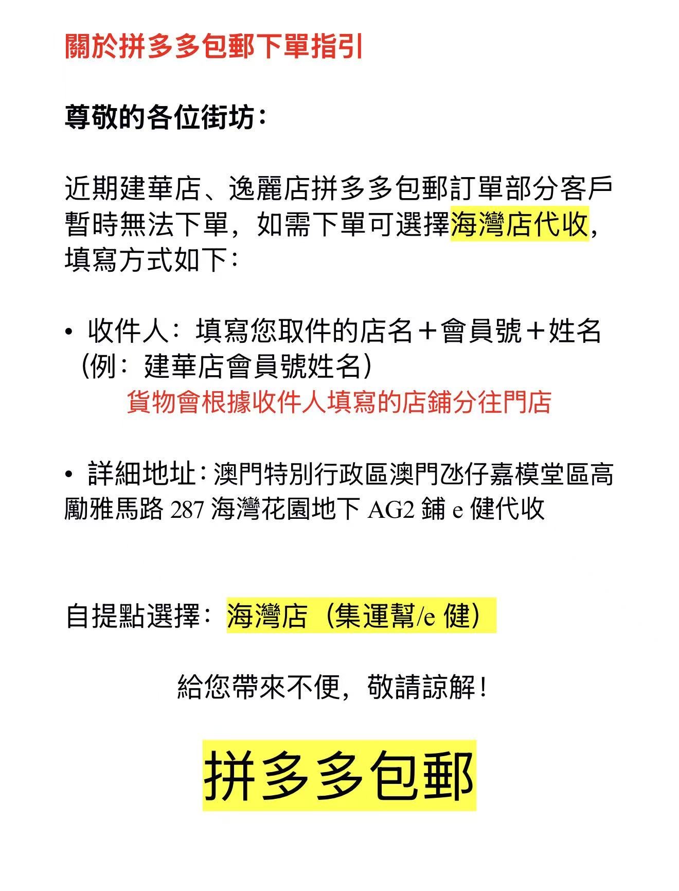「建華店」關於拼多多包郵下單指引